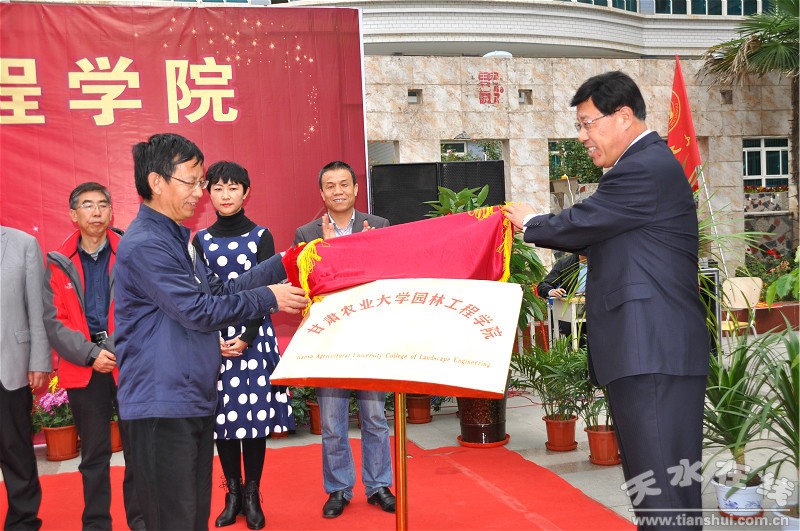 甘肅林職學(xué)院院長(zhǎng)陳逸平、甘肅農(nóng)業(yè)大學(xué)副校長(zhǎng)趙興緒共同為園林工程學(xué)院揭牌。