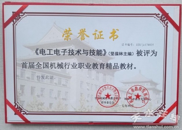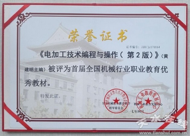 由機(jī)械工業(yè)教育發(fā)展中心、全國機(jī)械職業(yè)教育教學(xué)指導(dǎo)委員會舉辦的“首屆全國機(jī)械行業(yè)職業(yè)教育精品教材”遴選活動中,甘肅機(jī)電職業(yè)技術(shù)學(xué)院推選的多部教材分別被評為精品教材和優(yōu)秀教材,其中堅(jiān)葆林副教授主編的《電工電子技術(shù)與技能》被評為精品教材,李宗義教授主編的《機(jī)械制圖與AutoCAD(第2版)》、李宗義教授、黃建明副教授主編的《先進(jìn)制造技術(shù)第2版》、黃建明副教授主編的《電加工技術(shù)編程與操作(第2版)》等分別被評為優(yōu)秀教材。