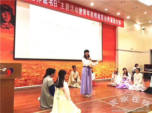 4月25日,天水一中舉辦了“世界讀書日”主題活動(dòng)暨青年教師教育經(jīng)典誦讀大賽,學(xué)校35歲以下青年教師共計(jì)100余人參加了誦讀活動(dòng)。