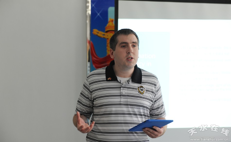 5月26日下午,美國福特海斯州立大學(xué)歷史系主任金•佩雷斯(KIM PEREZ)教授、教育學(xué)院院長助理杰瑞•海恩斯(JERRI A.HAYNES)教授、外國語學(xué)院英語文學(xué)部主任波林•斯科特(PAULINE MARIE SCOTT)教授、管理系巴布•喬治(BABU GEORGE)博士、護理學(xué)院瓦萊麗•余(VALERIE YU)博士、管理系副教授詹姆斯•哈伊特(JAMES C.HYATT)博士、圖書館克萊爾•尼克森(CLAIRE NICKERSON)女士、圖書館內(nèi)森•埃爾伍德(NATHAN ELWOOD)先生一行分別為歷史文化學(xué)院、化學(xué)工程與技術(shù)學(xué)院、電子信息與電氣工程學(xué)院、外國語學(xué)院、商學(xué)院、圖書館、天水市衛(wèi)生學(xué)校講學(xué)。