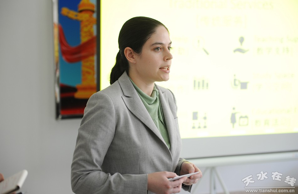 在圖書館會議室,克萊爾•尼克爾森女士和內(nèi)森•埃爾伍德先生分別作了兩個主題的學(xué)術(shù)報告。在第一個報告中,克萊爾•尼克爾森女士介紹了圖書館的傳統(tǒng)服務(wù)和方向,她側(cè)重給我們闡述了美國高校圖書館的當(dāng)前趨勢即:數(shù)字學(xué)術(shù)的交流、對非傳統(tǒng)收藏的關(guān)注、游戲化學(xué)習(xí)的開展、創(chuàng)客空間的培育和數(shù)字徽章的設(shè)定等趨勢。在第二個報告中內(nèi)森•埃爾伍德先生提倡讓大學(xué)圖書管理員走進教室,走向世界,鍛煉和培養(yǎng)圖書管理員讀者查找、評估、有效使用信息的能力,增強圖書館服務(wù)的主動性,促進圖書館的參考咨詢工作,擴大圖書管理員和讀者的交流與溝通。他們的報告主題新穎,內(nèi)容充實,學(xué)術(shù)性和實踐性并重,對改進學(xué)校圖書館的管理和服務(wù)具有很大的啟發(fā)作用。