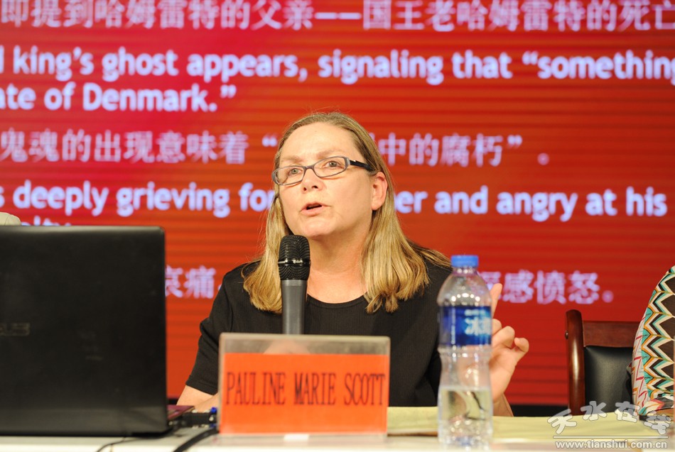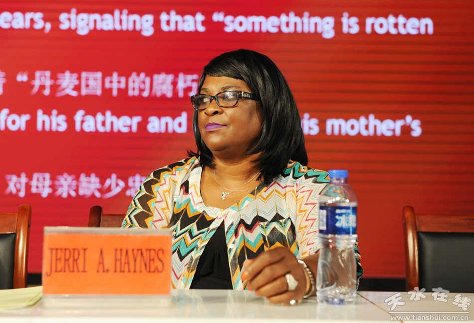 杰瑞•海恩斯教授和波林•斯科特教授在音樂廳為外國語學(xué)院和文學(xué)與文化傳播學(xué)院約300名師生分別作了題為The Theme of “Divided Duty” in Othello and Hamlet 和題為Challenges English Learners Face in Content Areas的學(xué)術(shù)報告。斯科特教授分別從《奧賽羅》和《哈姆雷特》兩部悲劇作品闡述了“分歧的義務(wù)”這一主題,并就莎士比亞作品的現(xiàn)代意義提出了自己的見解。海恩斯教授重點闡述了二語習(xí)得的重要性,以及英語作為第二語言的學(xué)習(xí)者在人文學(xué)科和自然學(xué)科的學(xué)習(xí)中所面臨的主要挑戰(zhàn)和應(yīng)對策略,并強調(diào)了與英文學(xué)習(xí)者合作時文化和語言差異的重要性。講座結(jié)束后,師生們積極踴躍地與兩位教授進行互動和交談。斯科特教授就師生們所提出的莎士比亞作品中的主題、女性地位、女性主義思想等問題進行了深入的解答;海恩斯教授就師生們提出的母語遷移對二語習(xí)得的影響以及英語寫作中存在的問題和教學(xué)策略等問題做出了耐心講解。