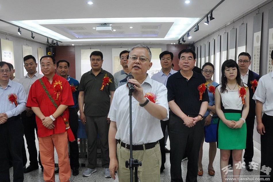 (天水師范學(xué)院美術(shù)與藝術(shù)設(shè)計(jì)學(xué)院院長賈利珠主持開幕式)