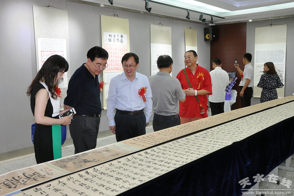 隨著國家“一帶一路”戰(zhàn)略的實(shí)施,繼承和弘揚(yáng)“絲綢之路”文化藝術(shù)成為推動中國當(dāng)代藝術(shù)文化發(fā)展的重要主題。為此,6月19日,由天水師范學(xué)院美術(shù)與藝術(shù)設(shè)計(jì)學(xué)院和上海交通大學(xué)媒體與設(shè)計(jì)學(xué)院聯(lián)袂舉辦的“新絲綢之路”文化藝術(shù)系列活動——文明肇啟 妙相莊嚴(yán):上海交通大學(xué)李鋼、姚君喜教授書畫作品展”在天水師范學(xué)院隆重舉辦。上海交通大學(xué)、天水師范學(xué)院、天水市委宣傳部、市人社局、市委黨校、市婦聯(lián)、市書協(xié)、市美協(xié)等多家單位的領(lǐng)導(dǎo)及嘉賓共100余人蒞臨會場參觀書畫展。