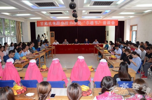 6月26日下午,甘肅機(jī)電職業(yè)技術(shù)學(xué)院在大學(xué)生活動(dòng)中心舉行了少數(shù)民族師生茶話會(huì),慶祝穆斯林傳統(tǒng)節(jié)日——“爾德節(jié)”。黨委書記李宗義,副院長李自勇、張德龍、毛文輝出席茶話會(huì),統(tǒng)戰(zhàn)部、學(xué)生工作部、團(tuán)委、各系部負(fù)責(zé)人和學(xué)院少數(shù)民族師生代表100多名參加。會(huì)議由副院長霍五堂主持。