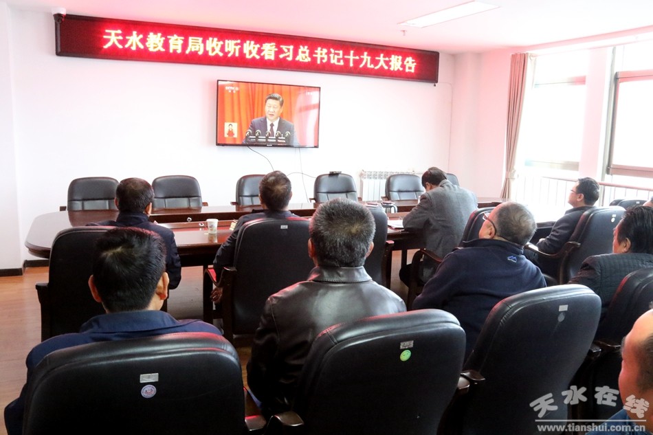 10月18日上午,天水市教育局組織全體機(jī)關(guān)干部收看中國共產(chǎn)黨第十九次全國代表大會(huì)開幕會(huì),聆聽習(xí)近平同志代表第十八屆中央委員會(huì)向大會(huì)作的報(bào)告。