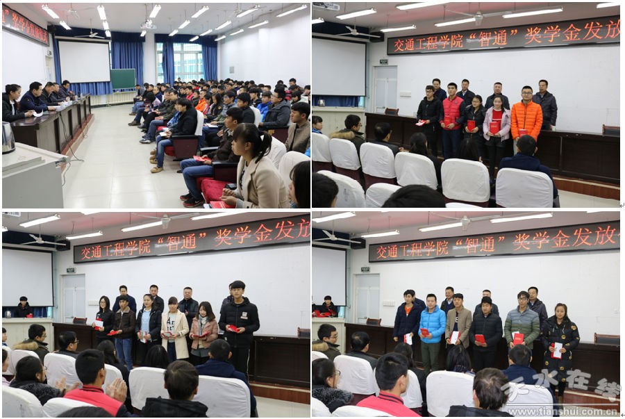 在會上,劉健宣讀了“交通工程學(xué)院關(guān)于發(fā)放2016-2017學(xué)年度‘智通’獎學(xué)金的決定”,共有17名同學(xué)獲得了智通獎學(xué)金(共10000元);與會領(lǐng)導(dǎo)為獲獎?wù)哳C發(fā)了榮譽(yù)證書和獎金;王艷娟同學(xué)代表獲獎?wù)咦髁税l(fā)言。