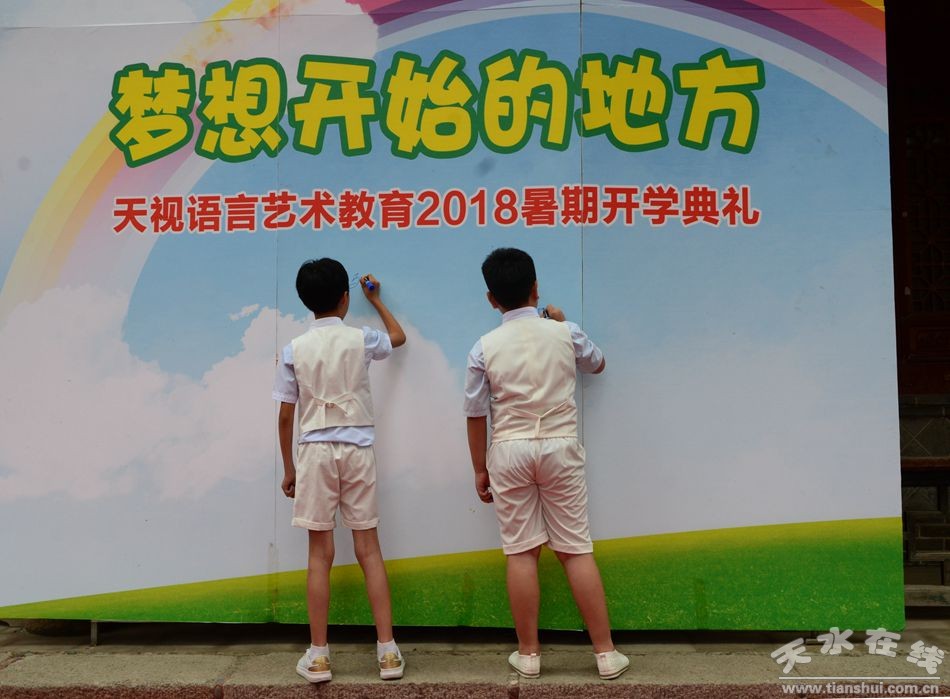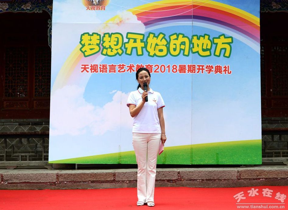7月14日上午,天水市文化館內(nèi)古樹青青,音樂悠揚(yáng)。天視語言藝術(shù)教育以“夢開始的地方”為主題舉辦暑期開學(xué)典禮,旨在明確語言學(xué)習(xí)的奮斗目標(biāo),營造濃厚的學(xué)習(xí)氣氛,為新學(xué)期創(chuàng)造一個良好的開端。天視教育眾多學(xué)員及家長參加了開學(xué)典禮。