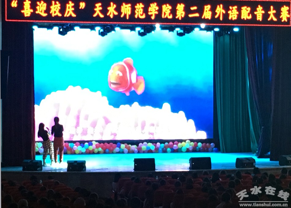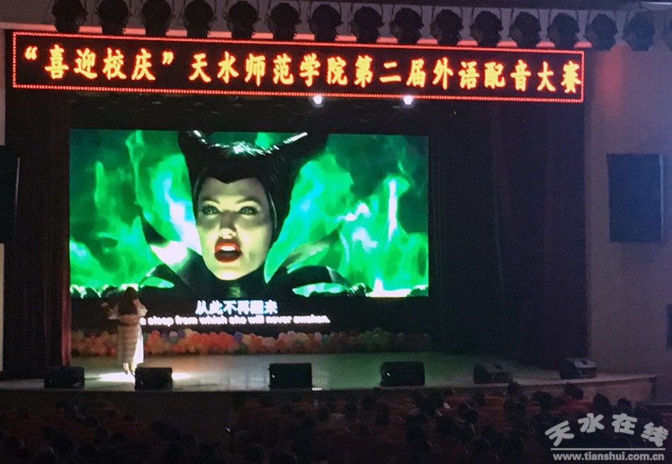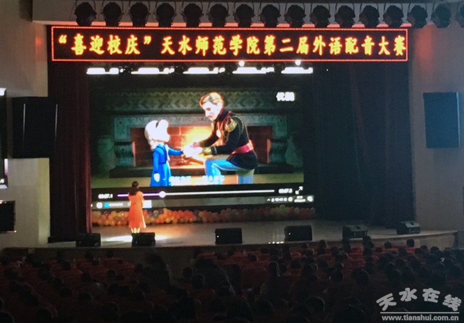 近日,天水師范學院在大禮堂舉辦第二屆外語配音大賽;顒游齺碜匀8鲗W院的30組學生參賽,經(jīng)過初賽選拔,《昆蟲物語》《冰雪奇緣》《白雪公主和七個小矮人》《長發(fā)公主》《沉睡魔咒》《泰坦尼克號》《尋夢環(huán)游記》《瘋狂動物城》等15組日、俄和英語配音作品,經(jīng)過表演、拉票、現(xiàn)場觀眾投票和評委打分等環(huán)節(jié),參加了決賽的激烈角逐。