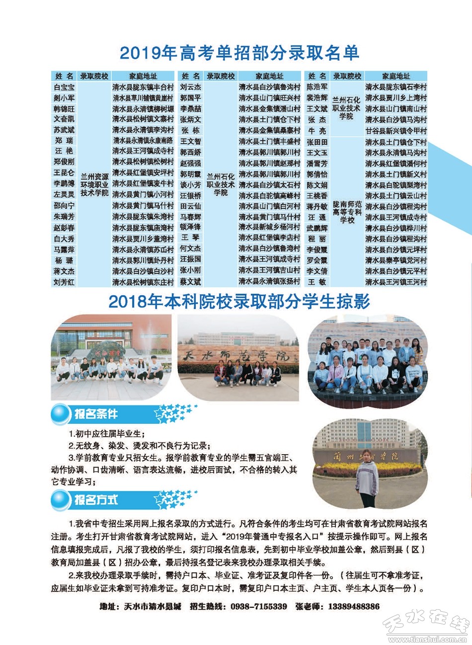 2019年天水農(nóng)業(yè)學(xué)校招生簡章(圖)