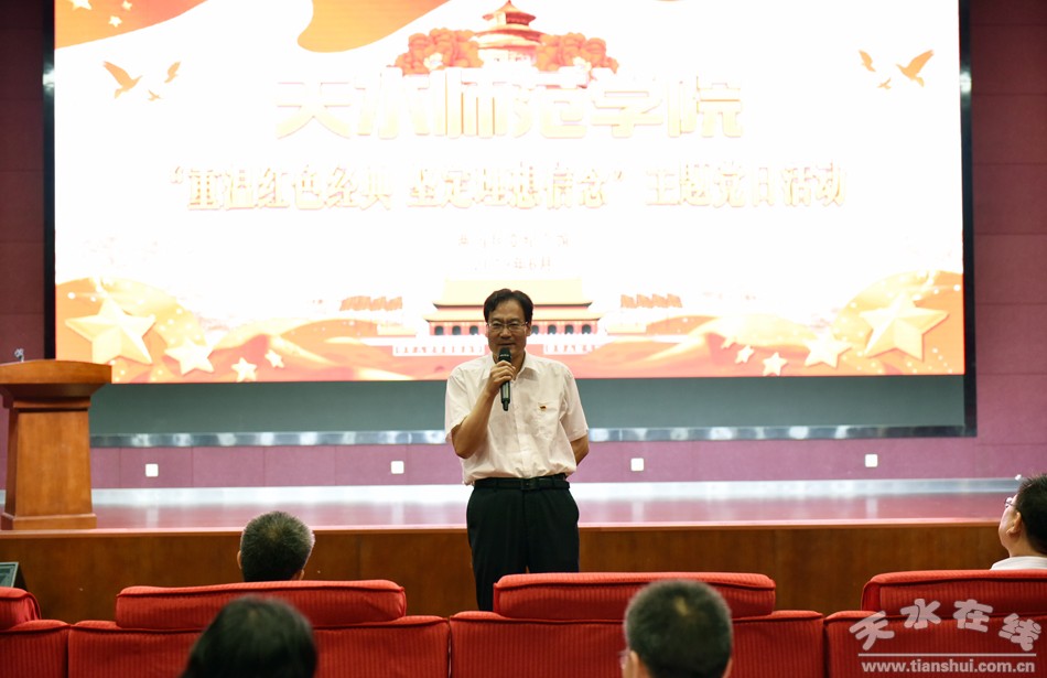 李正元強調,此次活動以“重溫紅色經典、堅定理想信念”為主題,通過緬懷革命先輩的豐功偉績,大家接受了一次深刻的黨性教育和精神洗禮,更深刻地體會到中國共產黨“為中國人民謀幸福、為中華民族謀復興”的初心使命。天水師范學院已走過60年的發(fā)展歷程,我們一定要牢記立德樹人初心和使命,培養(yǎng)德智體美勞全面發(fā)展的社會主義建設者和接班人;基層黨組織和全體黨員一定要發(fā)揮好戰(zhàn)斗堡壘、示范引領和模范帶頭作用,在學校的改革發(fā)展中勇當先鋒,為建設西部一流、國內知名、師范特色鮮明的高水平應用型大學積極貢獻力量。