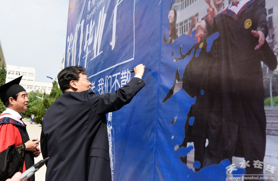 安濤在致辭中向全體畢業(yè)生表示祝賀和祝福。他指出,在天水師范學(xué)院的求學(xué)經(jīng)歷,使2019屆學(xué)生成長(zhǎng)為才能配德、德能配位、名能副實(shí)的“硬核”青年,他祝福2019屆學(xué)生揚(yáng)起創(chuàng)造的風(fēng)帆,駛向金色的海岸,演繹出各自人生的“C位”精彩。安濤囑托2019屆學(xué)生一要永不滿足,奮力超越,在未來能夠以學(xué)習(xí)增才干,借奮斗成強(qiáng)者,用奮斗為自己創(chuàng)造出一個(gè)美好的未來。二要善待自己,保持快樂,做一個(gè)持續(xù)保持快樂的人,成為一個(gè)不斷接近幸福的人。三要充滿愛心,寬容待人,用寬容和愛心成人之美、成己之美、美美與共。