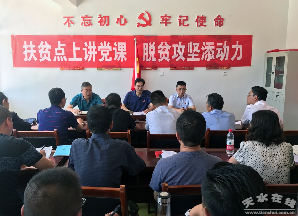 7月5日,天水師院黨委書記李正元在秦安縣王窯鎮(zhèn)為學(xué)校駐村幫扶工作隊臨時黨支部、校辦黨支部講黨課,共同學(xué)習(xí)習(xí)近平總書記精準(zhǔn)扶貧思想。王窯鎮(zhèn)黨委負(fù)責(zé)人、四個幫扶村黨支部書記參加活動。