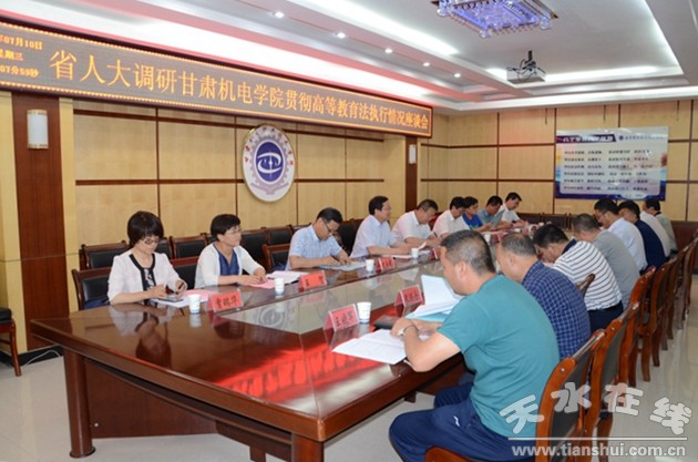 7月10日,受全國人大委托,甘肅省人大常委會教科文衛(wèi)工作委員會副主任王錫明率省人大執(zhí)法檢查組,來甘肅機電職業(yè)技術(shù)學(xué)院檢查《中華人民共和國高等教育法》貫徹執(zhí)行情況。學(xué)院領(lǐng)導(dǎo)堅葆林、李自勇及相關(guān)部門負責(zé)人參加座談。座談會由市人大常委會副主任蒲朝暉主持。