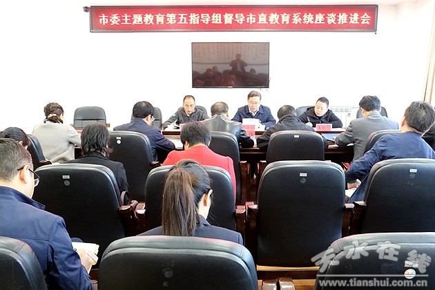 10月16日,天水市委“不忘初心、牢記使命”主題教育第五指導(dǎo)組召開市直教育系統(tǒng)主題教育座談推進(jìn)會。會議學(xué)習(xí)了習(xí)近平總書記在慶祝中華人民共和國成立70周年大會上的講話和習(xí)近平總書記在國家勛章和國家榮譽(yù)稱號頒授儀式上的講話,傳達(dá)了省委主題教育巡回指導(dǎo)組天水工作推進(jìn)會議精神和市委主題教育領(lǐng)導(dǎo)小組辦公室第六次調(diào)度會議精神。