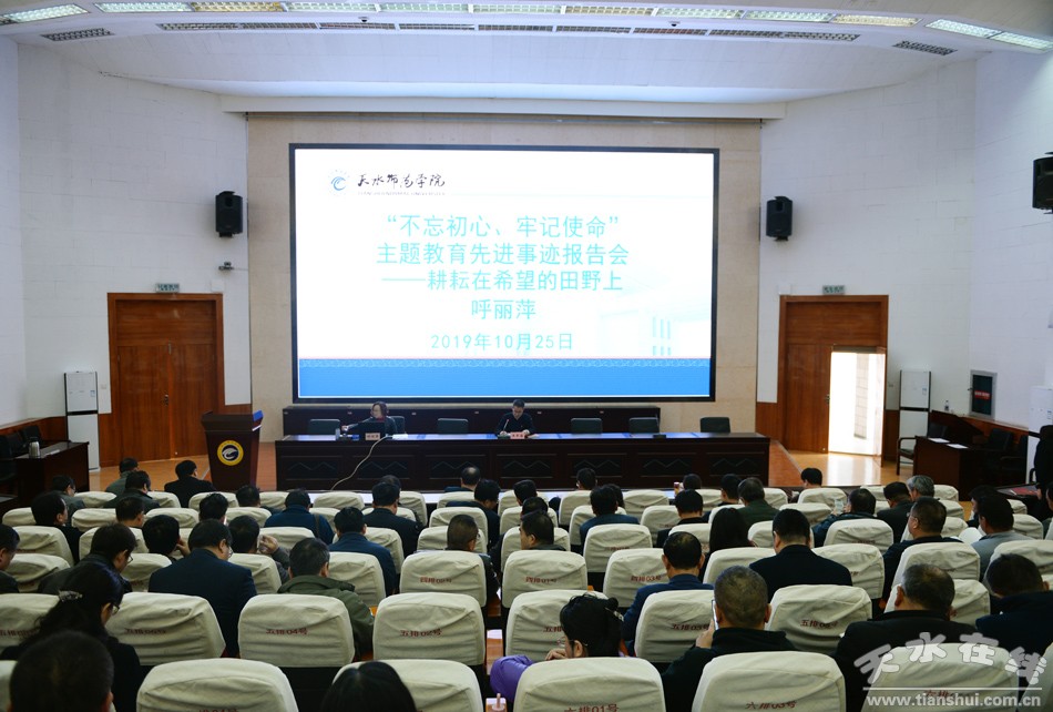 10月25日,天水師范學(xué)院舉辦“不忘初心、牢記使命”主題教育先進(jìn)事跡報(bào)告會(huì),中華人民共和國(guó)成立70周年紀(jì)念章獲得者、全國(guó)先進(jìn)工作者、學(xué)校守正•奮進(jìn)特別貢獻(xiàn)獎(jiǎng)獲得者呼麗萍研究員作了題為《耕耘在希望的田野上》的先進(jìn)事跡報(bào)告。
