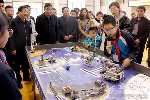 天水市政府副市長逯克宗講話,他指出,青少年科技創(chuàng)新大賽暨機(jī)器人競賽是青少年科技教育和科普工作的重要組成部分,是增強(qiáng)青少年創(chuàng)新意識、提高青少年科技素養(yǎng)的有效途徑。本屆青少年科技創(chuàng)新大賽暨機(jī)器人競賽的舉辦,是我市青少年創(chuàng)新教育工作近兩年取得多方面突破的基礎(chǔ)上進(jìn)入的一個新的發(fā)展階段。廣大青少年要樹立攀登科技高峰的遠(yuǎn)大志向,勤奮學(xué)習(xí),刻苦鉆研,在科技創(chuàng)新活動中充分發(fā)揮聰明才智,不斷提升創(chuàng)新本領(lǐng),為成長為高素質(zhì)的社會主義建設(shè)者和中華民族偉大復(fù)興的追夢者打下堅實基礎(chǔ)。