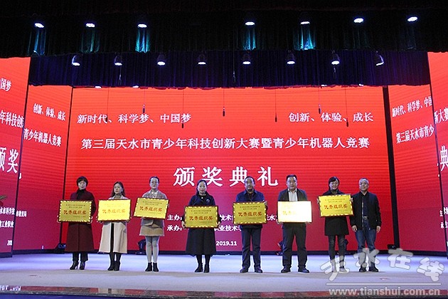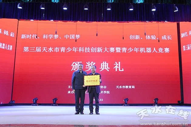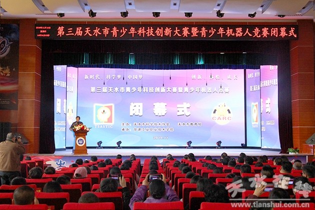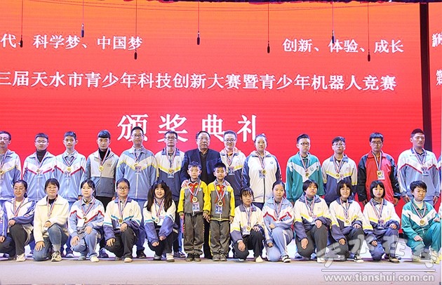 閉幕式上,大賽評審委員會副主任、天水市青少年科學教育協(xié)會副理事長、天水一中校長助理胡莜巖做了大賽評審報告。本次競賽共有兩區(qū)五縣39支代表隊、367名青少年選手和教師參加。經(jīng)過激烈角逐,天水市建二小學、天水市逸夫?qū)嶒炛袑W、天水市一中分獲FLL工程挑戰(zhàn)賽、綜合技能競賽、VER工程競賽等項目的獎項。秦州區(qū)科學技術(shù)協(xié)會、麥積區(qū)科學技術(shù)協(xié)會等獲得“優(yōu)秀組織獎”,甘肅工業(yè)職業(yè)技術(shù)學院榮獲“特別貢獻獎”。