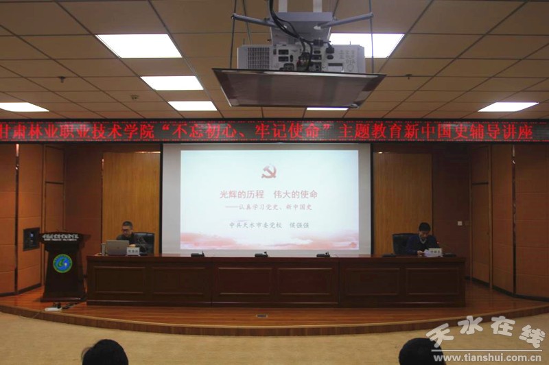 11月14日,甘肅林業(yè)職業(yè)技術(shù)學(xué)院特邀中共天水市委講師團(tuán)成員、市委黨校黨史與黨建教研室講師侯強(qiáng)強(qiáng)舉辦“不忘初心、牢記使命”主題教育黨史、新中國(guó)史專題講座。學(xué)院黨委班子成員,全體中層干部、各黨支部書記和委員、專職組織員、專職輔導(dǎo)員參加。黨委副書記、主題教育領(lǐng)導(dǎo)小組辦公室主任許祖生主持。