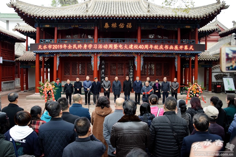開(kāi)幕式由電大天水分校黨委書(shū)記李龍主持,校長(zhǎng)李子園致歡迎詞,天水市教育局副局長(zhǎng)王奎講話,市政協(xié)副主席王振宇宣布2019年全民終身學(xué)習(xí)活動(dòng)周暨天水電大建校40周年書(shū)畫(huà)展開(kāi)幕。