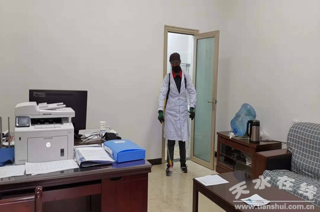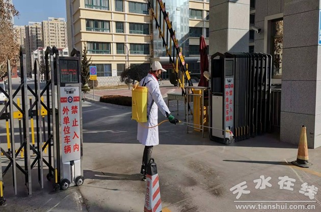 后勤處搶時間與市內外醫(yī)院、疾病防控中心、生產廠家聯(lián)系,從蘭州、天水等地購置了口罩、測溫儀、防護服、消毒液、醫(yī)用酒精等,第一時間配發(fā)給工作人員和相關場所,充分保障供給。2月3日,又一次組織開展校園及周邊大面積消毒殺菌、衛(wèi)生清潔、空氣凈化工作。工作人員使用灑水槍、噴霧器、清潔車對校園、樓道、電梯、室內、衛(wèi)生間、垃圾桶等徹底清掃保潔消毒,讓病毒無處藏身。