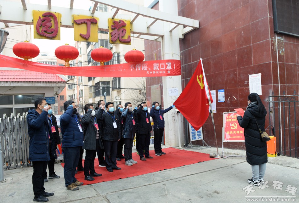 一名黨員就是一面旗幟,一個(gè)支部就是一座堡壘。2月5日,學(xué)校黨委批準(zhǔn)在學(xué)校層面組建的3個(gè)黨員先鋒小分隊(duì)分別成立臨時(shí)黨支部,由各先鋒小分隊(duì)隊(duì)長(zhǎng)任臨時(shí)黨支部書(shū)記,團(tuán)結(jié)帶領(lǐng)其他11名黨員駐守疫情防控前線“戰(zhàn)場(chǎng)”,堅(jiān)定扛起疫情防控的“先鋒隊(duì)”和“尖刀連”責(zé)任,在緊急時(shí)刻,勇于接受考驗(yàn),為打贏學(xué)校疫情防控阻擊戰(zhàn)提供堅(jiān)強(qiáng)組織保障!拔抑驹讣尤胫袊(guó)共產(chǎn)黨,擁護(hù)黨的綱領(lǐng),遵守黨的章程,履行黨員義務(wù),執(zhí)行黨的決定,嚴(yán)守黨的紀(jì)律……”全體黨員面對(duì)黨旗莊嚴(yán)宣誓,表示將認(rèn)真堅(jiān)守為民初心,積極踐行黨員使命,使學(xué)校疫情防控工作做到關(guān)鍵環(huán)節(jié)有組織把著,關(guān)鍵時(shí)刻有黨員撐著,讓黨旗在防控疫情斗爭(zhēng)第一線高高飄揚(yáng)。