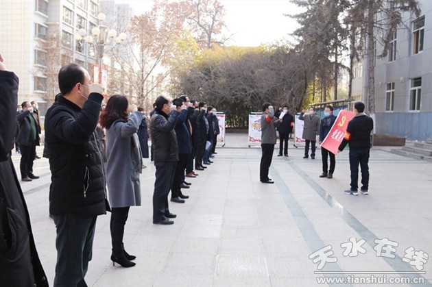 2月10日,甘肅工業(yè)職業(yè)技術(shù)學(xué)院在行政辦公樓前舉行了黨員先鋒隊授旗、宣誓儀式。校黨委書記楊聲向先鋒隊授隊旗,全體先鋒隊隊員面對黨旗莊重宣誓,立誓言、表決心,堅決打贏疫情防控阻擊戰(zhàn)。