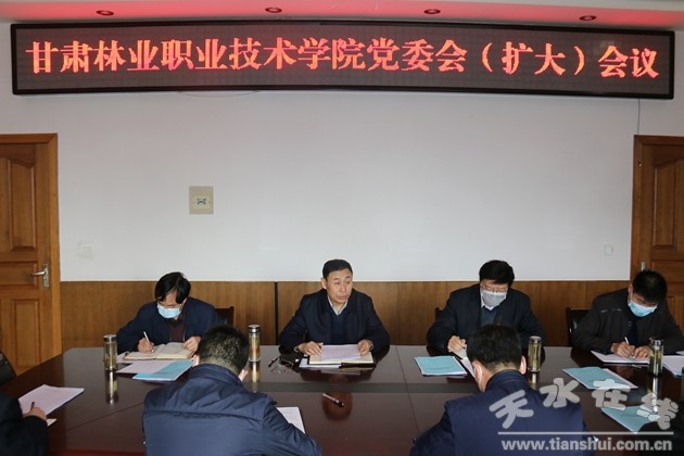 近日,甘肅林業(yè)職業(yè)技術(shù)學(xué)院黨委書記、疫情防控領(lǐng)導(dǎo)小組組長高云峰主持召開黨委會(擴大)會議,院長、疫情防控領(lǐng)導(dǎo)小組組長陳逸平及其他院領(lǐng)導(dǎo)虎保成、許祖生、羅廣元、王瑞元、劉乃君、劉剛、謝小平出席,辦公室、宣傳部、組織部、教務(wù)處、學(xué)生處、基建處、總務(wù)處、國資處、招就處、保衛(wèi)處、飲食中心、本科部等部門主要負責(zé)人和駐村工作隊隊長參加。