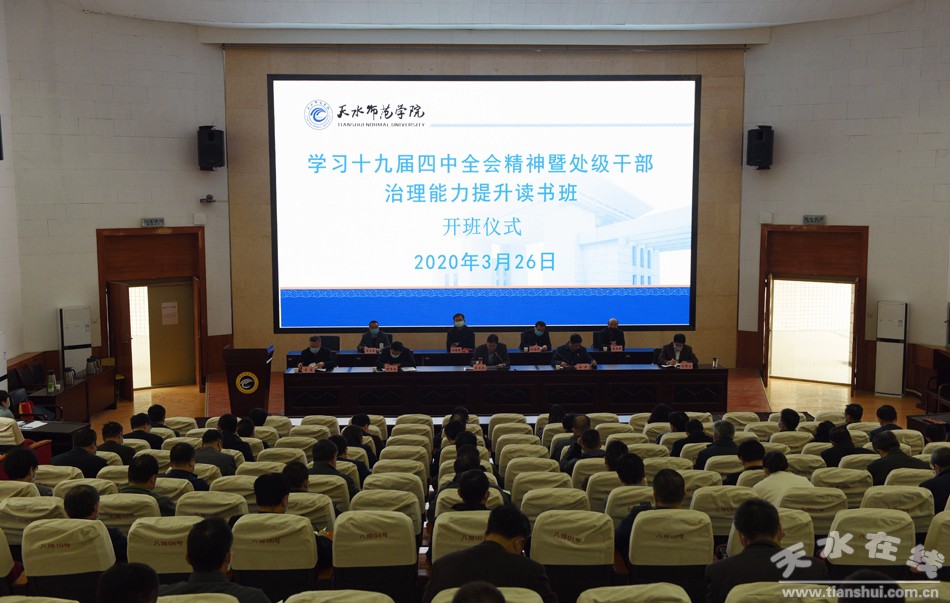 3月26日下午,天水師范學(xué)院學(xué)習(xí)十九屆四中全會(huì)精神暨處級干部治理能力提升讀書班開班。