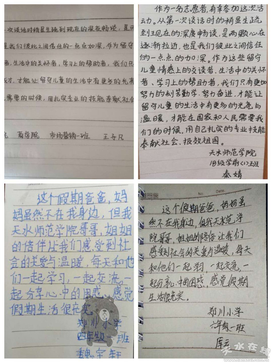鄭川小學四年級一班學生魏宇軒說:“這個假期爸爸、媽媽雖然不在我身邊,但天水師范學院哥哥、姐姐的陪伴讓我感受到關愛與溫暖,每天和他們一起學習,一起交流,分享心中的困惑,感覺假期生活很充實!