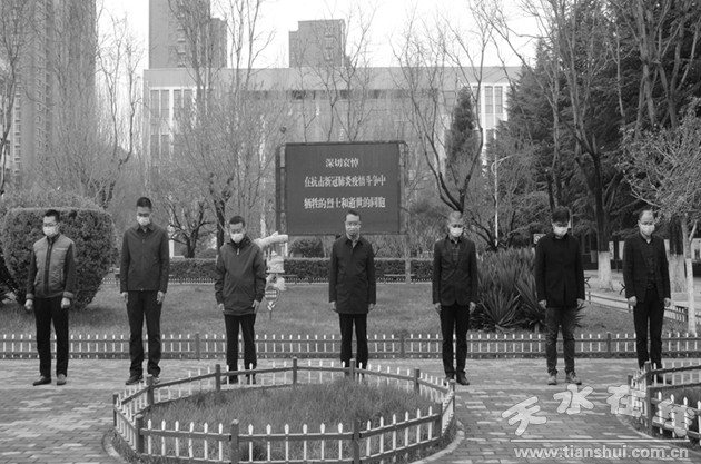 為表達(dá)全院師生對抗擊新冠肺炎疫情斗爭犧牲烈士和逝世同胞的深切哀悼,4月4日,庚子年清明節(jié),上午10時,學(xué)院下半旗志哀,汽車等鳴笛,防空警報鳴響;同時,值班領(lǐng)導(dǎo)、學(xué)院黨委書記、院長堅葆林及值班科室負(fù)責(zé)人、保衛(wèi)和后勤工作人員隨即停止手頭工作,一同肅立默哀3分鐘。