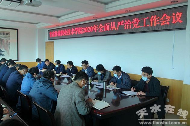 會議學(xué)習(xí)傳達了十九屆中央紀(jì)委四次全會精神、十三屆省紀(jì)委四次全會精神以及全省教育系統(tǒng)全面從嚴(yán)治黨工作會議精神,安排部署了《中共甘肅林業(yè)職業(yè)技術(shù)學(xué)院委員會關(guān)于分解2020年度全面從嚴(yán)治黨工作任務(wù)的通知》的貫徹落實工作。