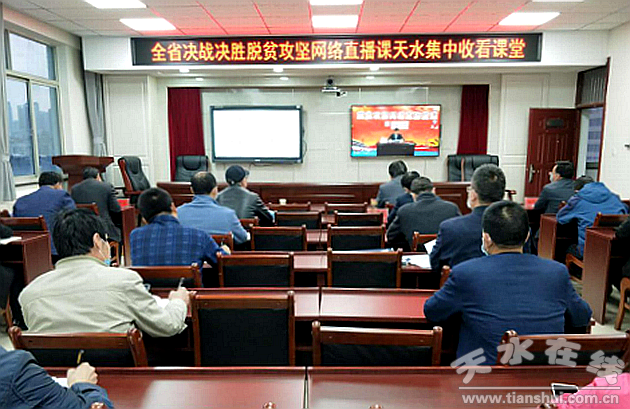 4月22日晚,由省委組織部主辦、甘肅廣播電視大學(xué)、甘肅干部網(wǎng)絡(luò)學(xué)院承辦的全省決戰(zhàn)決勝脫貧攻堅(jiān)網(wǎng)絡(luò)直播課正式開(kāi)播。省委農(nóng)辦主任、省農(nóng)村農(nóng)業(yè)廳黨組書(shū)記、廳長(zhǎng)李旺澤作了題為《沖刺階段產(chǎn)業(yè)扶貧需要準(zhǔn)確把握和幾個(gè)重點(diǎn)問(wèn)題》的報(bào)告,共有14個(gè)市州和蘭州新區(qū)16069個(gè)單位234943名干部參加了學(xué)習(xí)培訓(xùn)。天水市農(nóng)村農(nóng)業(yè)局領(lǐng)導(dǎo)、各科室、站所負(fù)責(zé)人等23人在天水開(kāi)放大學(xué)云教室認(rèn)真收看了報(bào)告。學(xué)校嚴(yán)格執(zhí)行疫情防控各項(xiàng)制度措施,對(duì)教學(xué)場(chǎng)地嚴(yán)格消毒,從體溫測(cè)量、消殺病毒、安排單人單桌等各方面規(guī)范落實(shí),為培訓(xùn)提供了安全保障。