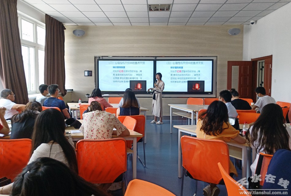 6月12日,天水師范學(xué)院舉辦輔導(dǎo)員專題培訓(xùn)會。天水師院心理健康咨詢室王丹老師為全校輔導(dǎo)員作題為“疫情防控期間學(xué)生心理危機(jī)干預(yù)”的專題輔導(dǎo)報告。
