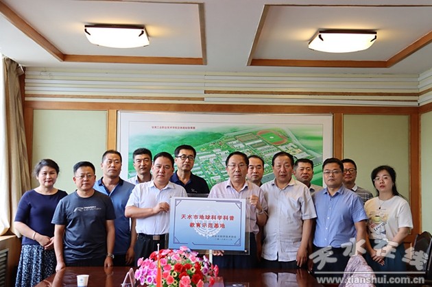 7月20日,天水市地球科學(xué)科普教育示范基地授牌儀式在甘肅工業(yè)職業(yè)技術(shù)學(xué)院行政樓二樓會議室舉行。天水市科學(xué)技術(shù)協(xié)會主席李鳳奇、副主席劉暾偉、袁正榮等領(lǐng)導(dǎo)和學(xué)校黨委書記楊聲、副校長李玉生出席,黨政辦、國資后勤處、科技處、地質(zhì)博物館、雙創(chuàng)學(xué)院等部門負(fù)責(zé)人參加授牌儀式。