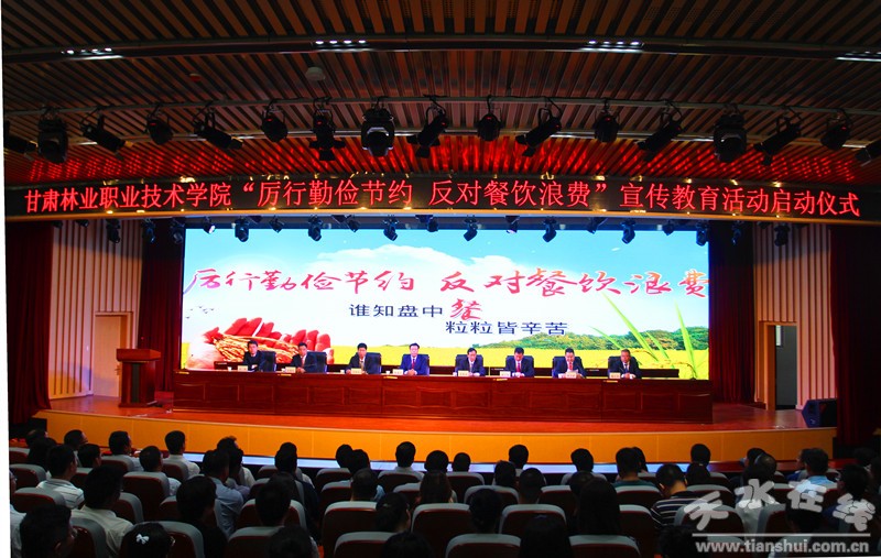 9月10日,甘肅林業(yè)職業(yè)技術(shù)學院“厲行勤儉節(jié)約 反對餐飲浪費”主題宣傳教育活動在綜合實訓大樓二樓報告廳啟動。學院黨委書記高云峰、院長陳逸平,其他院領(lǐng)導虎保成、羅廣元、王瑞元、劉乃君、劉剛、謝小平出席,全體教職工及學生代表參加。會議由黨委副書記許祖生主持。