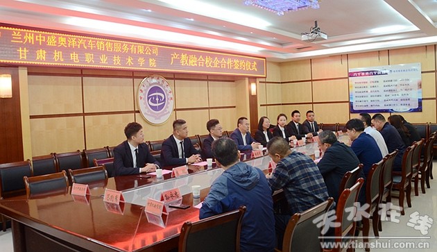 9月11日上午,甘肅機電職業(yè)技術(shù)學(xué)院與蘭州中盛奧澤汽車銷售服務(wù)有限公司在二號教學(xué)樓會議室舉行產(chǎn)教融合校企合作框架協(xié)議簽約儀式。蘭州中盛奧澤汽車銷售服務(wù)有限公司董事長吳云澤、總經(jīng)理韓曙光、集團審計副總趙志英、天水中盛奧華汽車銷售服務(wù)有限公司總經(jīng)理張宏偉,在家院領(lǐng)導(dǎo)堅葆林、趙彥軍、張德龍、毛文輝及相關(guān)部門負責(zé)人參加座談并出席簽約儀式。