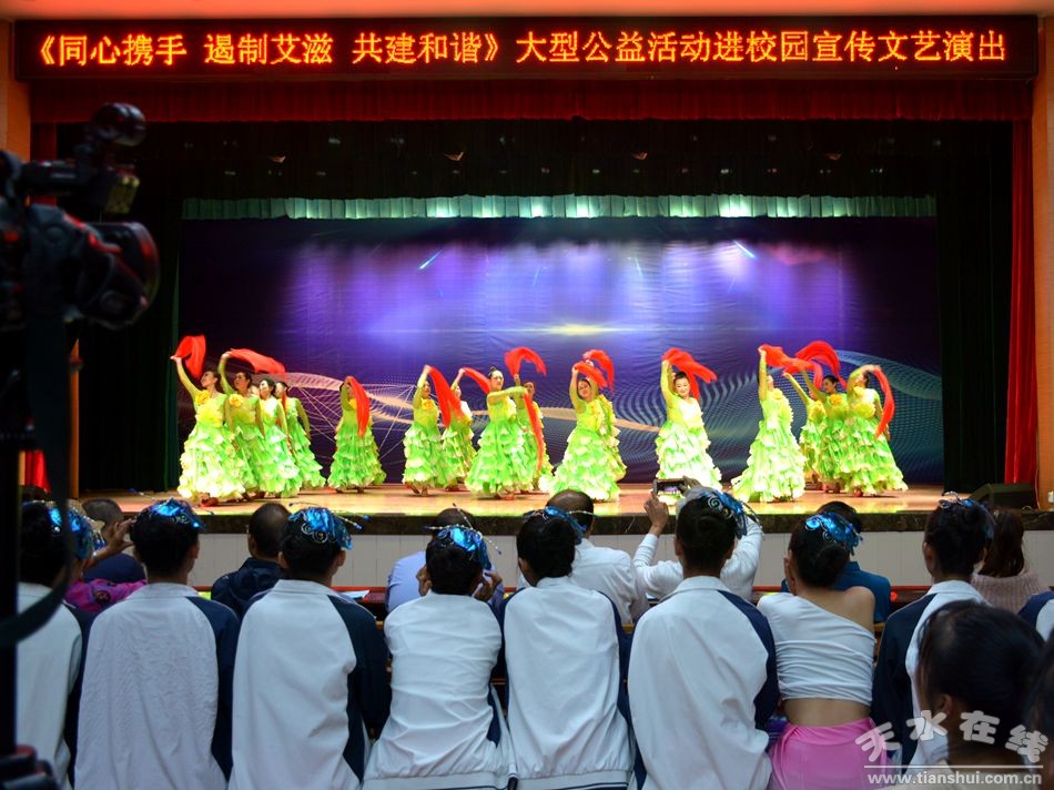 9月17日,由天水市秦州區(qū)疾控中心主辦,天水天驕藝術(shù)團、天水天磊文化傳媒公司承辦并由天水市職業(yè)技術(shù)學(xué)校協(xié)辦的“同心攜手 遏制艾滋 共建和諧'大型公益活動進校園文藝演出在天水職業(yè)技術(shù)學(xué)校本部舉行。