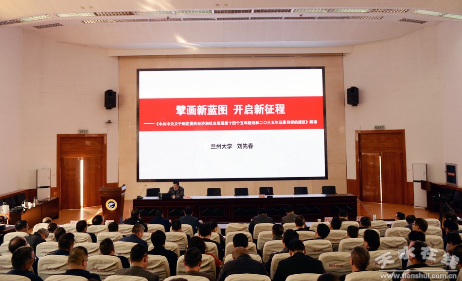 11月10日下午,天水師范學(xué)院第15次黨委理論中心組(擴(kuò)大)學(xué)習(xí)會議在二號報告廳召開,甘肅省社科聯(lián)副主席,蘭州大學(xué)馬克思主義學(xué)院博士生導(dǎo)師劉先春教授作了題為《擘畫新藍(lán)圖 開啟新征程——<中共中央關(guān)于制定國民經(jīng)濟(jì)和社會發(fā)展第十四個五年規(guī)劃和二〇三五年遠(yuǎn)景目標(biāo)的建議>解讀》的輔導(dǎo)報告。會議由黨委書記李正元主持。