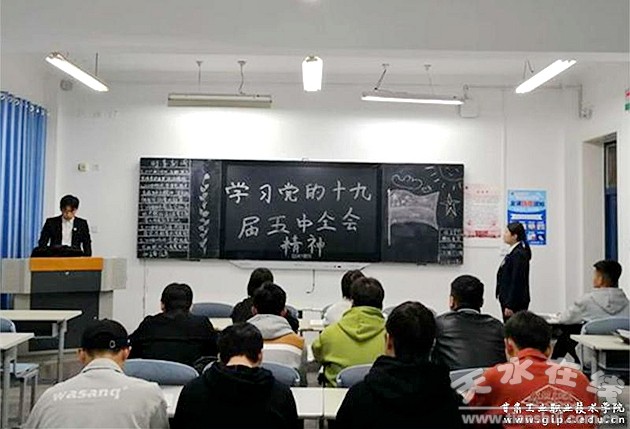10月26日至29日,中國共產(chǎn)黨第十九屆中央委員會第五次全體會議在北京舉行。甘工院學(xué)子在第一時間通過網(wǎng)絡(luò)、電視、報紙、新媒體等途徑積極學(xué)習(xí)十九屆五中全會相關(guān)內(nèi)容的基礎(chǔ)上,11月3日我校各團支部召開了以“學(xué)習(xí)黨的十九屆五中全會精神”為主題的團課,進一步掀起了學(xué)習(xí)熱潮。