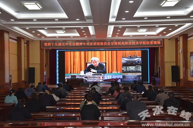 按照省教育廳通知要求,甘肅機電職業(yè)技術(shù)學院于12日下午和晚上,以基層黨組織為單位全面組織廣大黨員干部和師生認真收看報告會視頻,收看范圍覆蓋全院師生。