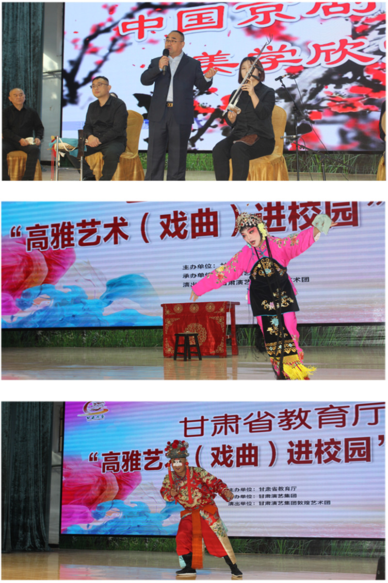11月23日,由甘肅省教育廳主辦、甘肅演藝集團(tuán)承辦的“2020年高雅藝術(shù)進(jìn)校園活動(dòng)”走進(jìn)甘肅林業(yè)職業(yè)技術(shù)學(xué)院。甘肅演藝集團(tuán)敦煌藝術(shù)團(tuán)(京劇團(tuán))帶來的“京劇折子戲”,讓學(xué)院師生現(xiàn)場(chǎng)感受了傳統(tǒng)戲曲文化的無窮魅力。