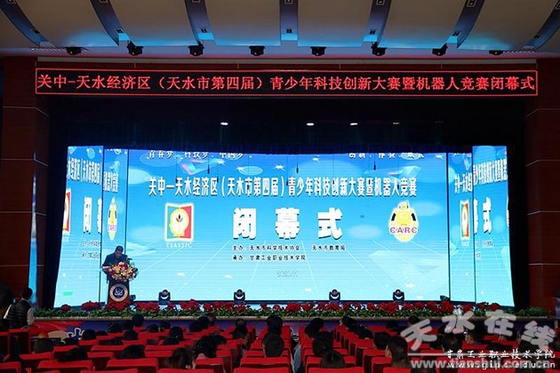 11月13日下午,關(guān)中-天水經(jīng)濟(jì)區(qū)(天水市第四屆)青少年科技創(chuàng)新大賽暨機(jī)器人競賽活動(dòng)在甘肅工業(yè)職業(yè)技術(shù)學(xué)院圓滿閉幕。天水市科協(xié)黨組書記、主席李鳳奇,市科協(xié)副主席袁正榮,甘肅工業(yè)職業(yè)技術(shù)學(xué)院黨委委員張選擇,科技處處長劉亞琦出席閉幕式,閉幕式由市科協(xié)副主席劉暾煒主持。