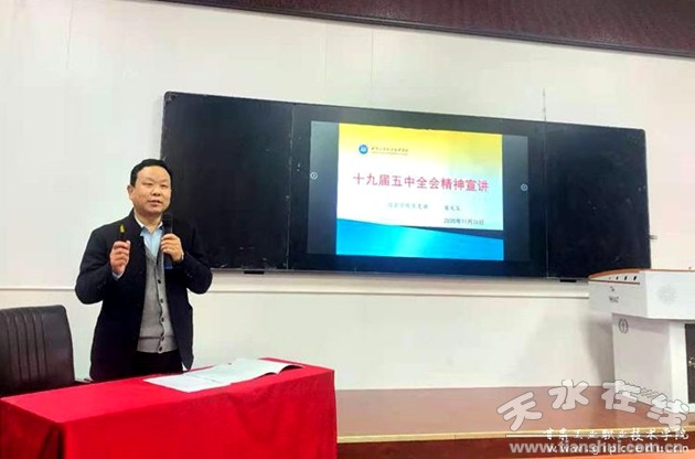 潘文生從黨的十九屆五中全會(huì)精神意義、《中共中央關(guān)于制定國(guó)民經(jīng)濟(jì)和社會(huì)發(fā)展第十四個(gè)五年規(guī)劃和二〇三五年遠(yuǎn)景目標(biāo)的建議》的主要內(nèi)容、未來發(fā)展目標(biāo)等方面進(jìn)行了系統(tǒng)闡述和深刻解讀。潘文生強(qiáng)調(diào),黨的十九屆五中全會(huì)是我國(guó)在實(shí)現(xiàn)中華民族偉大復(fù)興的關(guān)鍵時(shí)期召開的一次具有全局性、歷史性意義的重要會(huì)議,在取得決定性成就的基礎(chǔ)上,我們更要著眼未來,為建設(shè)社會(huì)主義現(xiàn)代化強(qiáng)國(guó)而努力奮斗。潘文生指出,作為新時(shí)代的大學(xué)生,應(yīng)該認(rèn)真領(lǐng)會(huì)黨的重要會(huì)議精神,深刻理解《建議》的核心要義,將理論與實(shí)際相結(jié)合,把黨的路線、方針、政策落實(shí)到自身行動(dòng)當(dāng)中,內(nèi)化于心,外化于行,真正做到將黨的指導(dǎo)思想入腦入心、見行見效,努力學(xué)好專業(yè)技能,為實(shí)現(xiàn)中華民族偉大復(fù)興而努力奮斗。