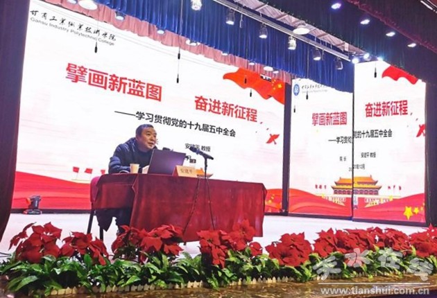 安建平教授以“擘畫新藍(lán)圖 ?奮進(jìn)新征程”為題,從“十九屆五中全會(huì)召開的背景、深入貫徹黨的十九屆五中全會(huì)精神、學(xué)校十三五期間取得的成果、開啟學(xué)校高質(zhì)量發(fā)展新征程”等四方面,結(jié)合學(xué)校實(shí)際和職業(yè)教育改革發(fā)展機(jī)遇,對(duì)全會(huì)精神進(jìn)行了系統(tǒng)闡述和講解輔導(dǎo)。