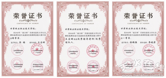 頒獎典禮上,甘肅林業(yè)職業(yè)技術學院6名學生全部獲獎,其中19測量二班張福同學獲特等獎,19測量3班漆鵬強同學榮獲一等獎。