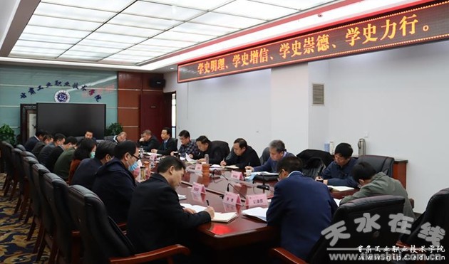 會議強(qiáng)調(diào),開展黨史學(xué)習(xí)教育是學(xué)校全年的重大政治任務(wù),各黨總支(黨支部)、各部門要認(rèn)真學(xué)習(xí)領(lǐng)會習(xí)近平總書記重要講話精神,切實(shí)增強(qiáng)“四個(gè)意識”、堅(jiān)定“四個(gè)自信”、做到“兩個(gè)維護(hù)”,提高思想認(rèn)識和政治站位,抓好本部門的學(xué)習(xí)教育工作。要把開展黨史學(xué)習(xí)教育與慶祝建黨100周年相結(jié)合,與落實(shí)“十四五”規(guī)劃相結(jié)合,與落實(shí)“雙高!苯ㄔO(shè)、打造“技能甘肅”、提質(zhì)培優(yōu)行動(dòng)計(jì)劃等重點(diǎn)工作任務(wù)相結(jié)合,更好地將黨史學(xué)習(xí)教育中激發(fā)出的信念信心、熱情激情轉(zhuǎn)化為攻堅(jiān)克難、干事創(chuàng)業(yè)的具體行動(dòng)。