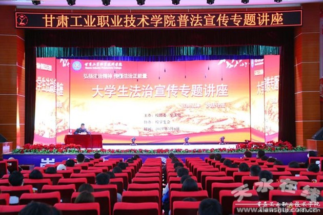 2021年5月4日是第72個“五四青年節(jié)”。為弘揚和傳承“五四”精神,切實增強廣大青年學生遵紀守法和依法維權意識。甘肅工業(yè)職業(yè)技術學院團委、學工處聯(lián)合組織開展“五四青年節(jié)”普法宣傳活動,5月6日,邀請?zhí)焖O(jiān)獄一監(jiān)區(qū)一分監(jiān)區(qū)分隊長孫振華警長走進甘工院,以“敬畏法律,知法守法”為主題,向300余名學生獻上了一堂精彩的法治宣傳課。