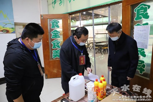 為貫徹落實(shí)甘肅省教育廳第五次高校疫情防控調(diào)度會(huì)會(huì)議精神,切實(shí)把疫情期間學(xué)校教育教學(xué)、后勤保障等工作做實(shí)做好,10月28日,甘肅工業(yè)職業(yè)技術(shù)學(xué)院黨委書(shū)記楊聲,黨委副書(shū)記、院長(zhǎng)安建平,黨委副書(shū)記郭建忠分別帶隊(duì),在紀(jì)委、防疫辦、學(xué)工處、國(guó)資后勤處等部門(mén)負(fù)責(zé)人陪同下,到學(xué)校食堂、學(xué)生公寓等重點(diǎn)場(chǎng)所開(kāi)展實(shí)地督導(dǎo)檢查。