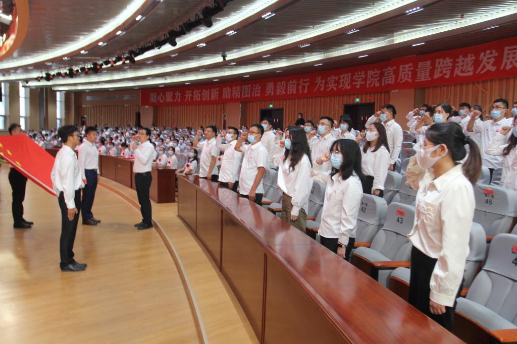大會(huì)在雄壯的國歌聲中開幕。新入職教師進(jìn)行宣誓。黨委副書記許祖生宣讀了學(xué)院“關(guān)于表彰2021—2022學(xué)年度先進(jìn)集體和先進(jìn)個(gè)人的決定”。與會(huì)領(lǐng)導(dǎo)為獲獎(jiǎng)集體和個(gè)人頒獎(jiǎng)。教師代表?xiàng)詈接畎l(fā)言。